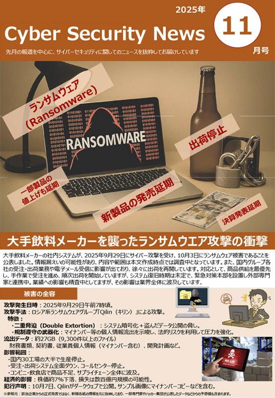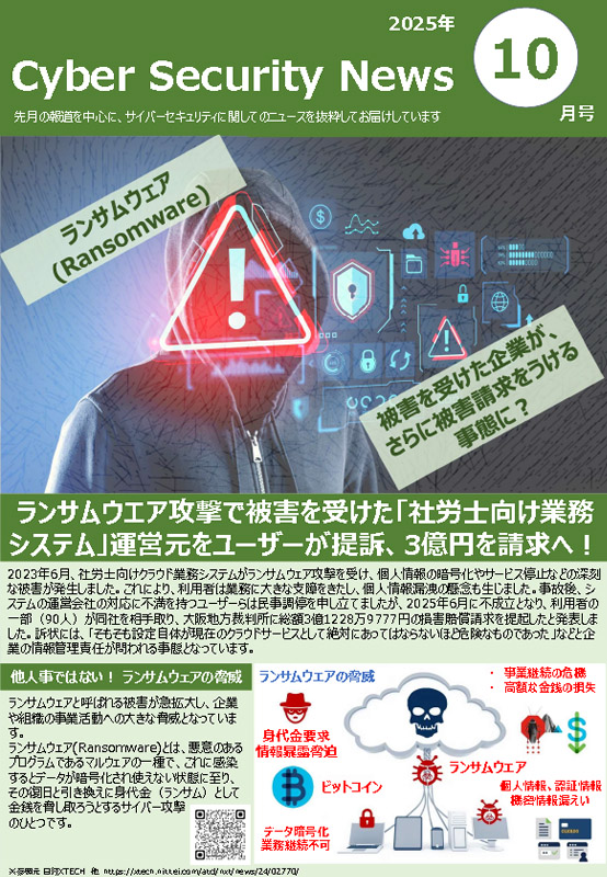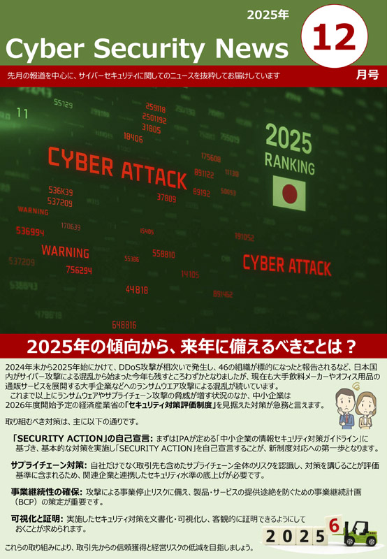 報道を中心に、サイバーセキュリティに関するニュースを毎月抜粋してお届けしています。